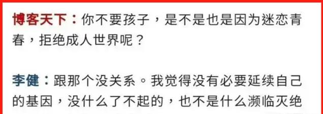 《博客天下》曾就这个问题采访过李健,问他:不生孩子是因为迷恋青春,还是拒绝成人世界?