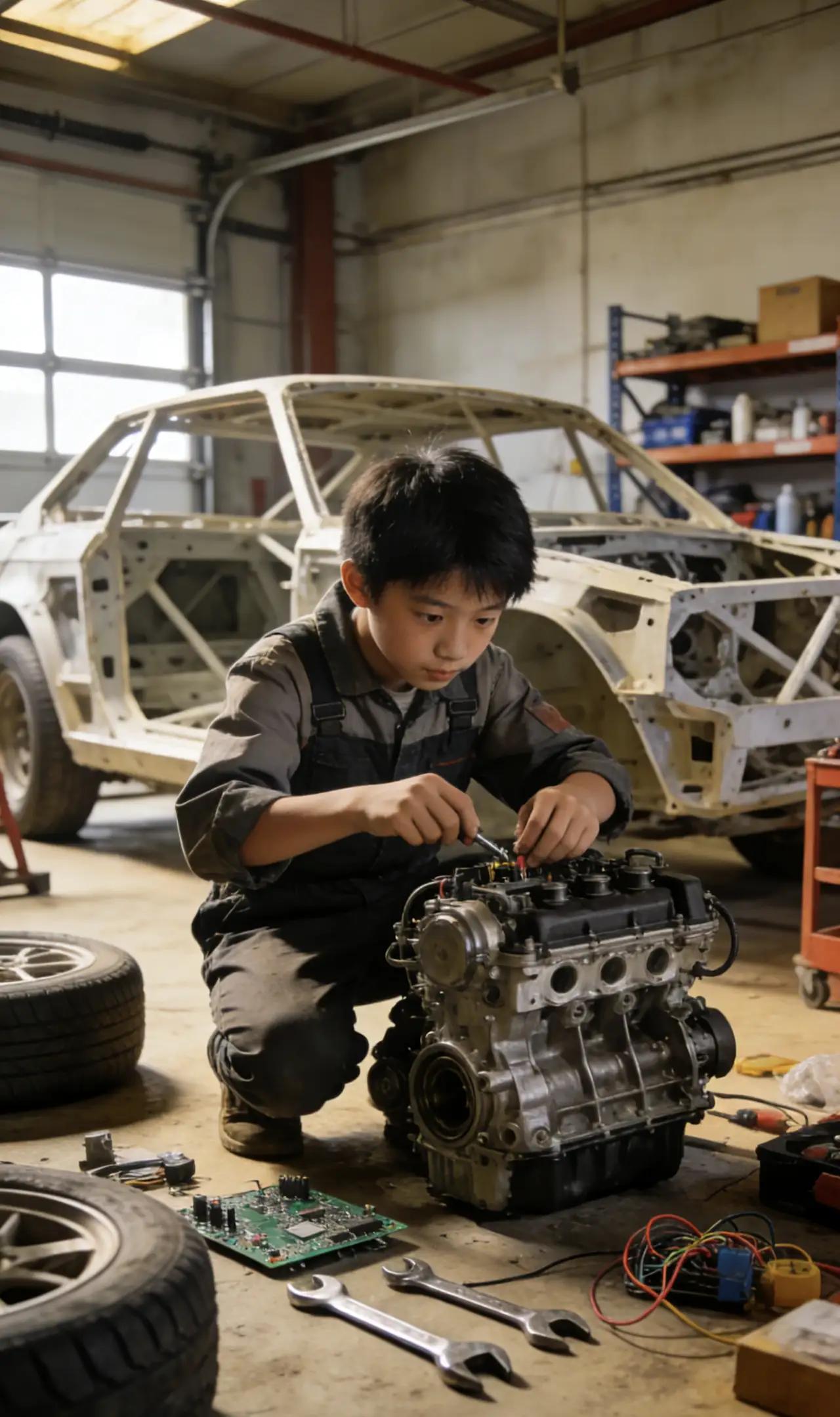 造这车的日子,别的娃儿放学耍游戏、追动画片,他蹲在储物间里流汗,手指被金属划破是家常便饭,指尖老茧褪了又长,有次调试电路还遭漏电麻了手,揉两下又继续干,这股执拗劲儿,说句“沉浸式搞事业”一点不夸张。一开始家里人也觉得他“不务正业”,初中生就该啃课本刷卷子,唠叨劝停没少来,结果看到娃儿眼里那束光,心也软了,老妈夜里留热饭,老爸四处找报废钢材,从“拦路虎”变成“神助攻”,这反转简直暖到心窝窝。