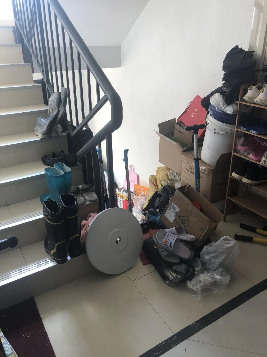 我们小区的楼梯扶手一推就晃,楼道还被住户堆了各种杂物,使得本来就狭窄的楼道变得更挤。