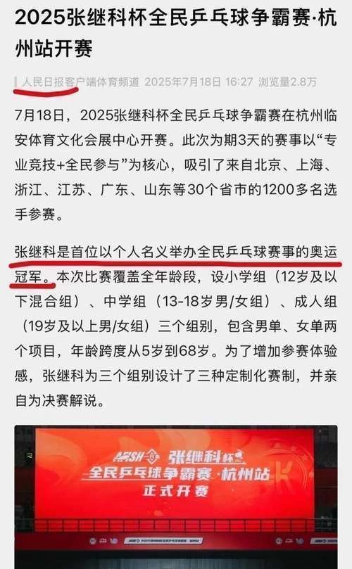 张继科,曾是中国乒乓球的代表人物之一,他的名字几乎和中国乒乓球的辉煌历史划上了等号。最近,张继科又引起了广泛关注——他亲自策划并举办了一场乒乓球比赛,消息一经传出,迅速引起了媒体的热议。要知道,张继科在过去几年里可一直是风口浪尖的存在,各种流言蜚语不断,而如今他重新出现在公众视野中,以这样一个积极的姿态再次亮相,也让人不禁对他的未来充满了期待。甚至《人民日报》也专门进行了报道,称他是奥运冠军中首个亲自策划全民赛事的人。或许,这不仅仅是张继科职业生涯的一个新起点,也是一种“正名”的象征。
