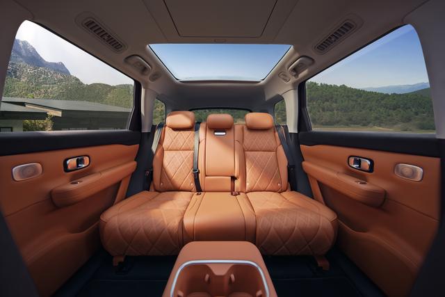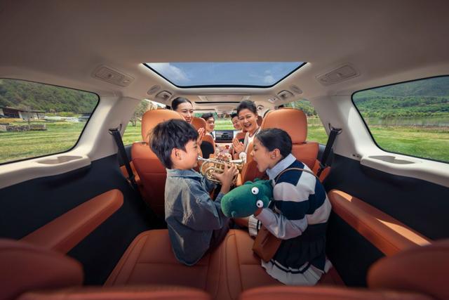 细节上,第三排设置了独立空调出风口和USB接口,能兼顾每一位乘客的需求,不会让后排乘客感到被忽视。后备箱空间也能满足日常家用,平时放置三个行李箱完全没问题,若将第三排座椅放倒,露营装备、婴儿车、行李箱等大件物品都能轻松容纳,不管是全家出游还是日常采购,都能轻松应对,彻底解决了五座车空间不足的痛点。