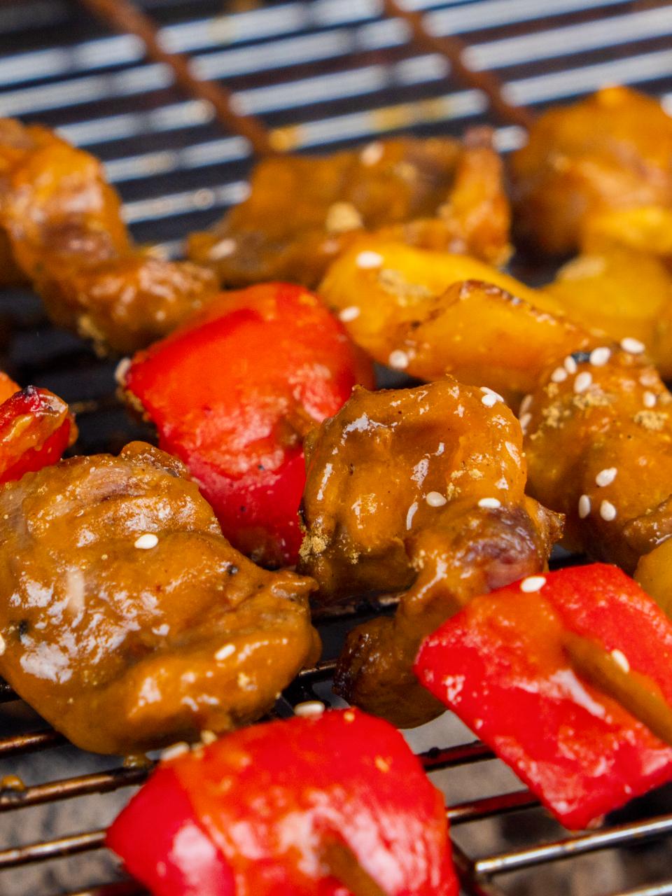 这种烧烤所使用的并非普通甜品果酱,而是以当地特产的山黄皮果、百香果、酸梅果等为基底,调和而成的双合烧烤果酱。烤得滋滋冒油的肉串,厚厚地刷上一层这种金黄色的果酱,在炭火的炙烤下泛着诱人的焦糖色光泽。