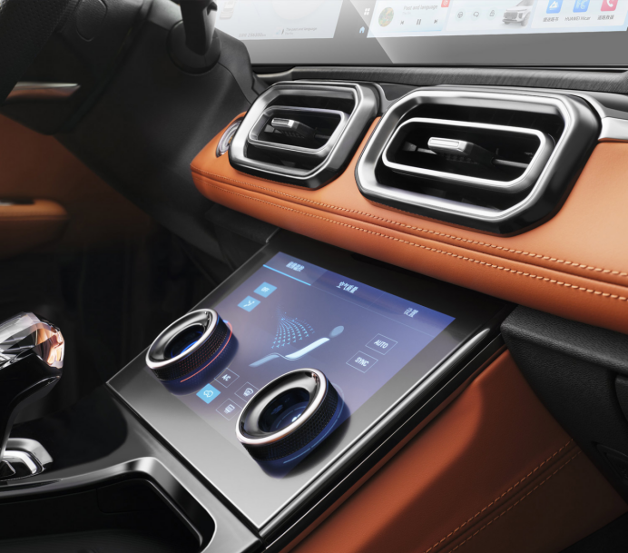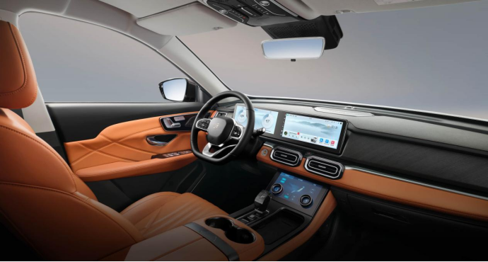 内饰方面,科技感拉满。双液晶仪表盘,九英寸空调屏,大师品质水晶档把,50W无线充电,双开门扶手箱,浮桥式中通道控制区,美观便利。