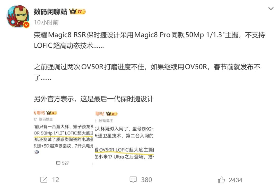 根据数码闲聊站的话说,荣耀Magic 8RSR将会是荣耀最后一款保时捷设计产品;这个消息我很早就在内部听说了(之前也说过)