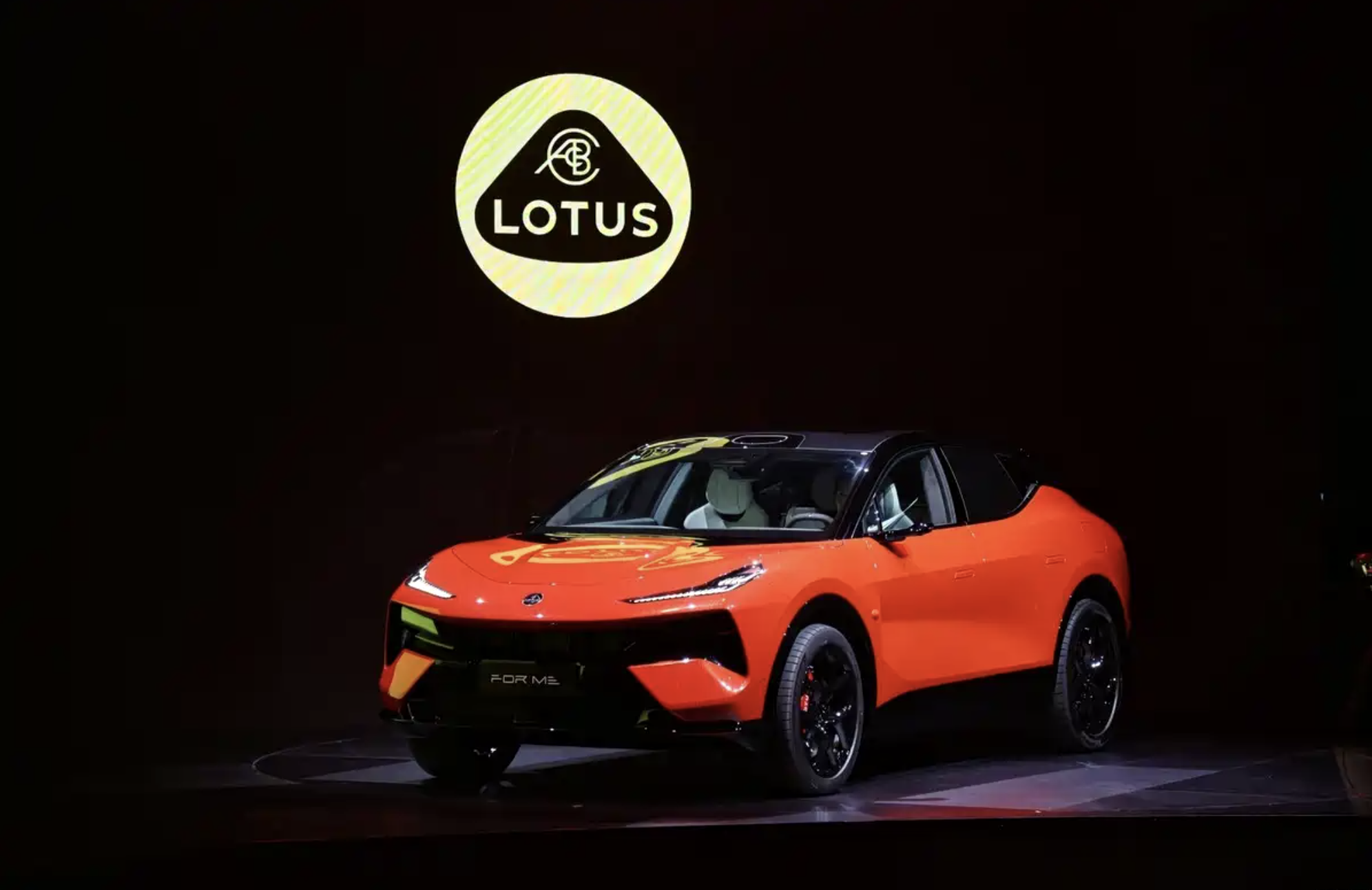 来到车身侧面,莲花For Me采用了更加运动的轿跑式车身,还加入舒展流畅的车身线条,更加倾斜的黑色A柱与流线型的车顶以及黑色大尾翼融为一体,不仅带来了悬浮式车顶的立体感,也增添了更多的运动感。橙色的特殊车漆涂装显得格外醒目。配备了20英寸的锻造轮毂,匹配了255/50 R20、285/45 R20规格的轮胎,还加入了莲花LTS标准下与Brembo联合研发的高性能刹车系统,并配备了红色的前六后四活塞刹车卡钳和大尺寸通风刹车盘。此外,莲花跑车还为莲花For Me设计4组8条Race-Aero风道,大幅降低风阻系数的同时提升车辆下压力。4档智能调节的电动尾翼提供了更大的下压力,还可以在急刹车时提升开合角度,产生额外制动力,进而辅助缩短制动距离。尺寸方面,莲花For Me长宽高为5103*2019*1630mm,车身轴距3019mm。