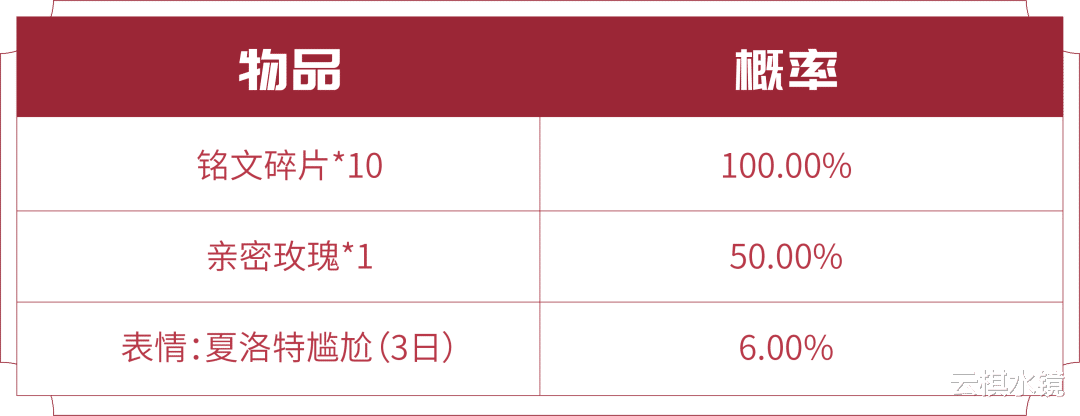 皮肤特权红包:打开后必得铭文碎片*10,有概率额外获得以下奖励:亲密玫瑰*1、动态表情-夏洛特尴尬(3天)(红包3月31日23:59过期)