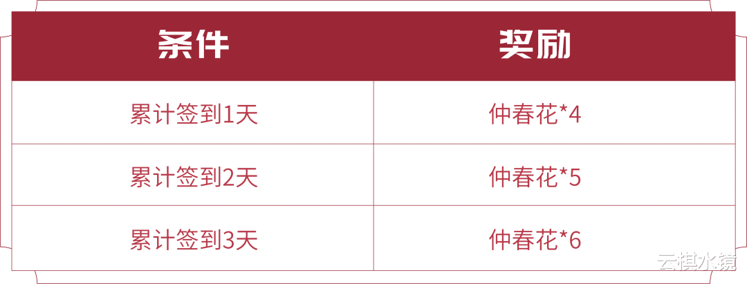 活动期间累计签到即可领取仲春花!