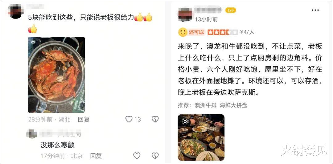 在火锅餐见看来,产品极具性价比,瞄准刚需,面对差评与舆论并投入善意······该店妥妥的成为下沉市场、低成本开店的范本。在火锅餐饮因流量焦虑,大多数门店吃不饱的情况下,如何开好一家店,值得行业人共同深思。