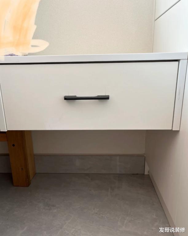 你以为悬空的好看好搞卫生,我劝你别跟风,咱先不说它悬空时间长了必然会倾斜,主要它不安全,这种床头柜只能做直角,我不相信你没有被磕碰过,那滋味不好受吧?