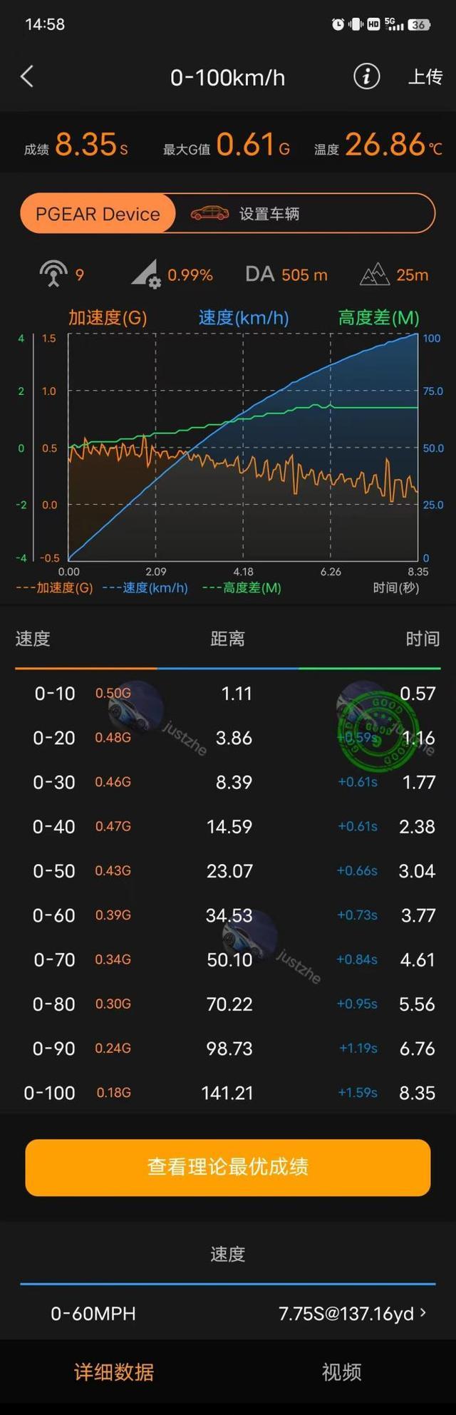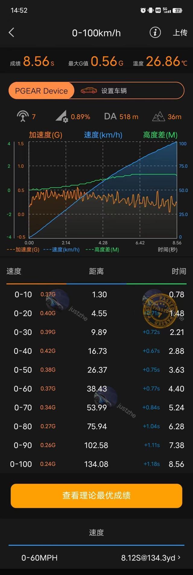 首先我们来看看加速的成绩,这次测试是在馈电的情况下进行的加速测试。汉DM-i的官方0-100km/h的加速时间为7.9秒,但是在实测的过程中,汉DM-i花了8.56s才破百,有虚标数据的嫌疑。相比之下,英仕派e:PHEV实测的0-100km/h需要8.35s,比汉DM-i略快一些。