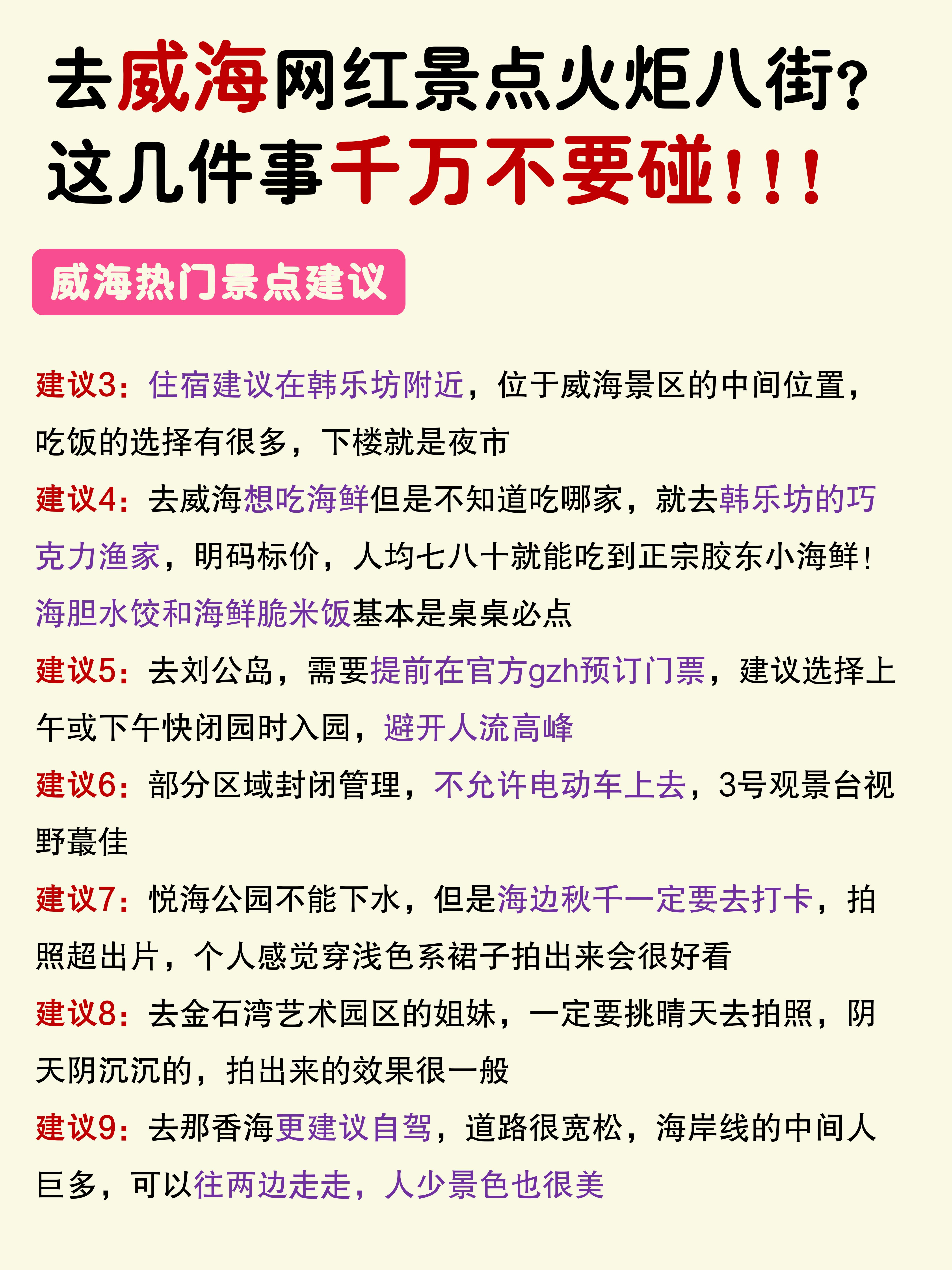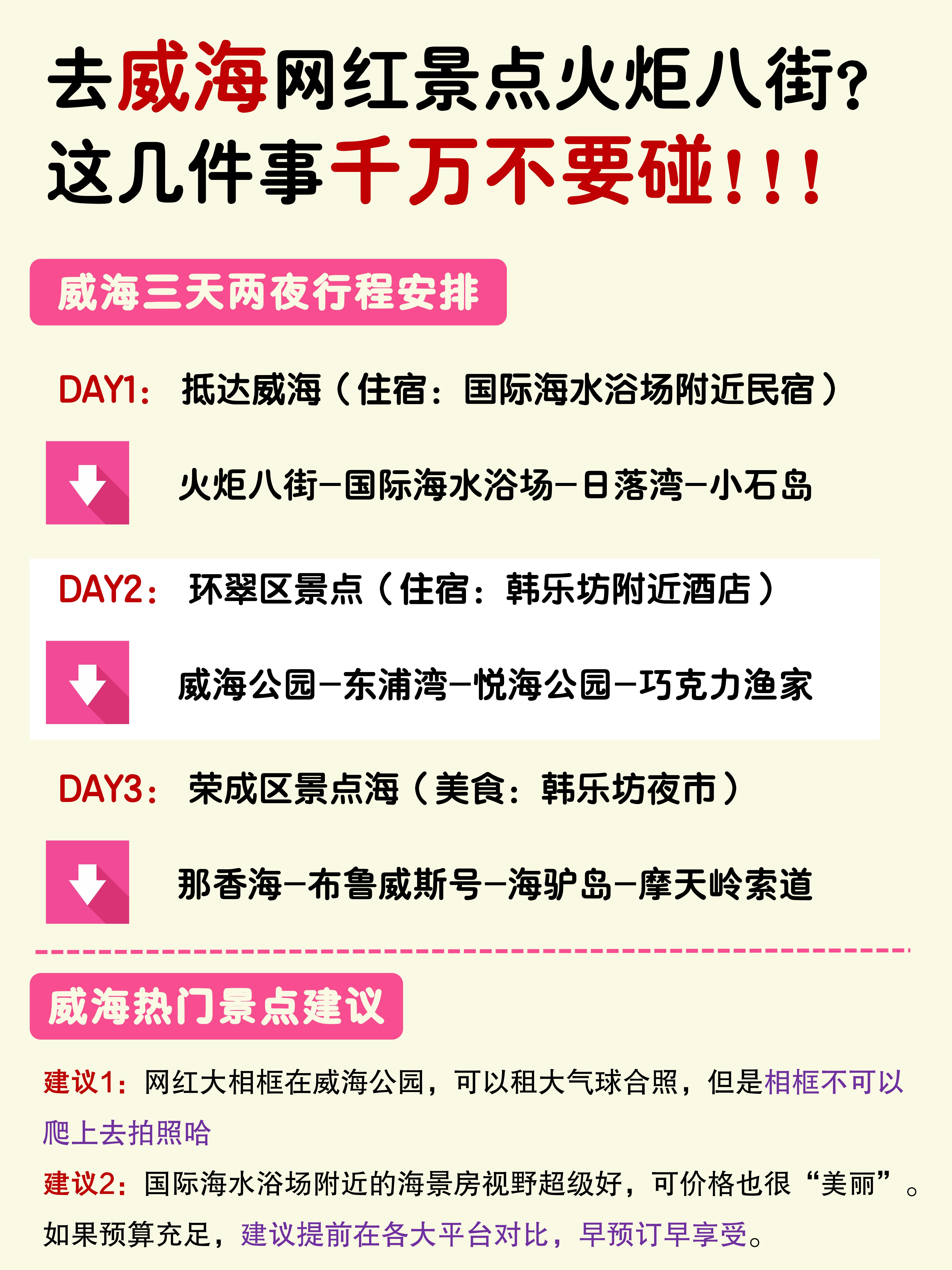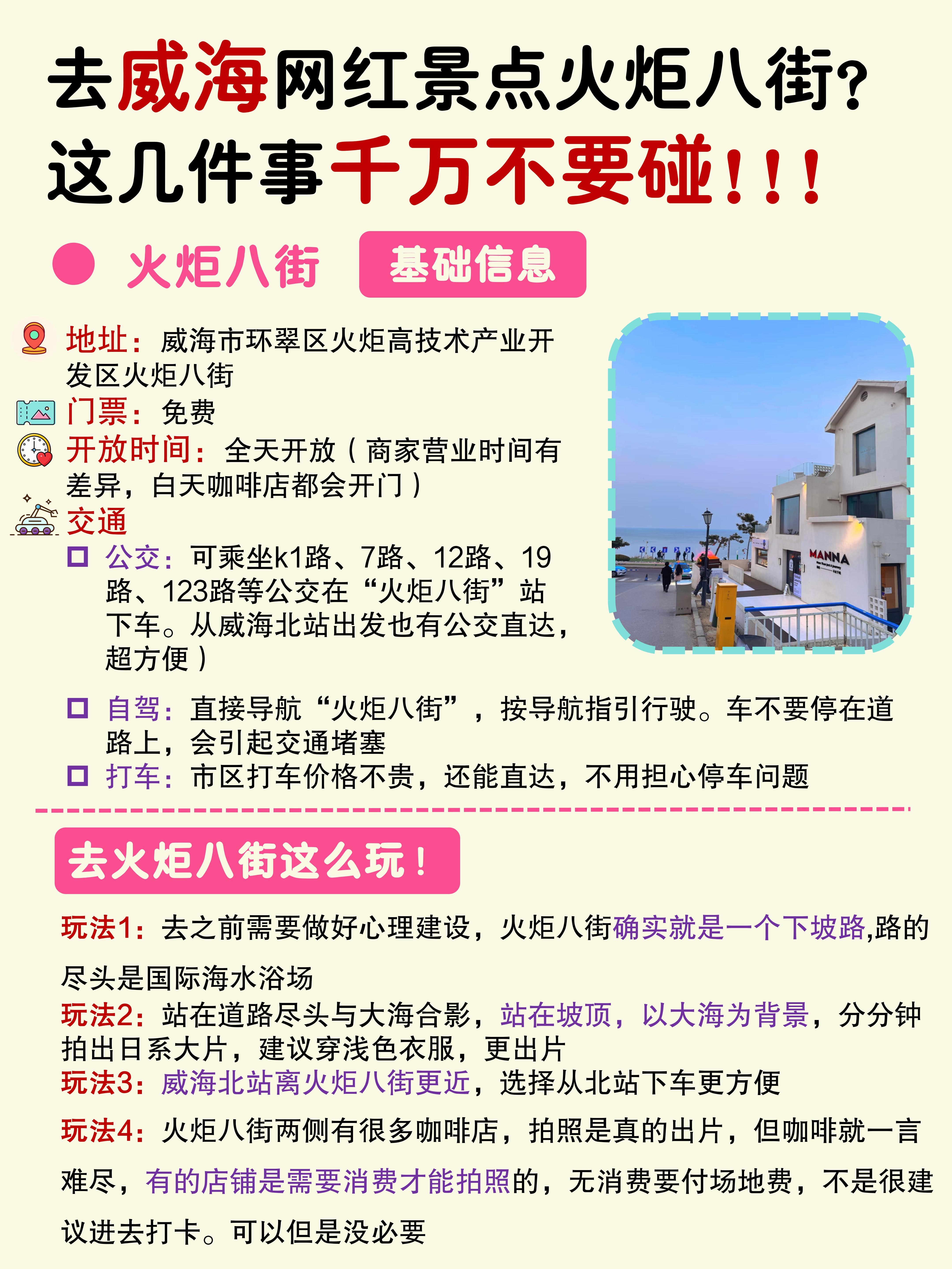 相信有很多姐妹是为了火炬八街去的威海,但是刷到的攻略大多数旺季的!去了威海3️⃣天的旅游路线,我给大家整理出来啦,景点和美食建议也有喔,需要的姐妹可以抄作业📖啦!