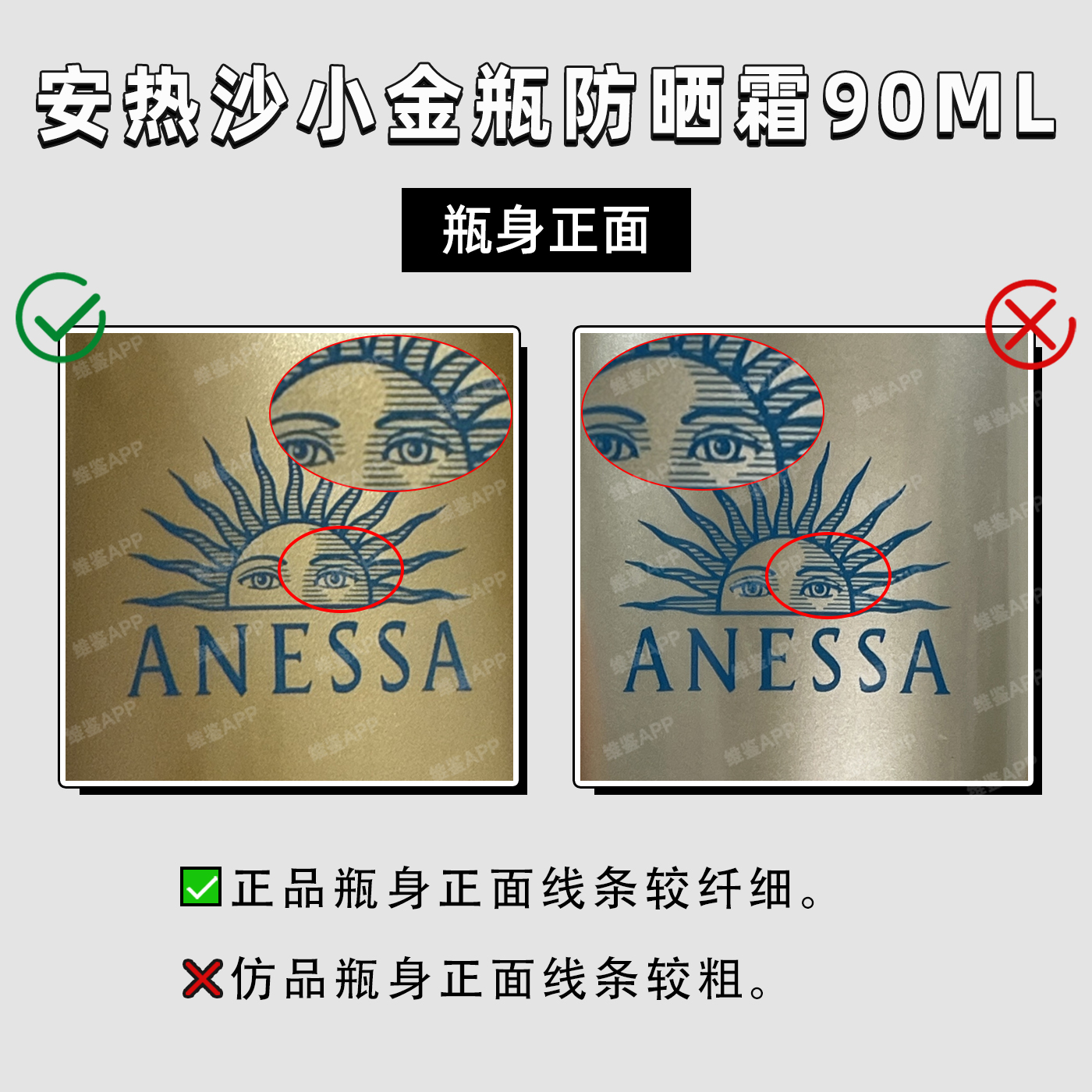 正品瓶身正面线条较纤细