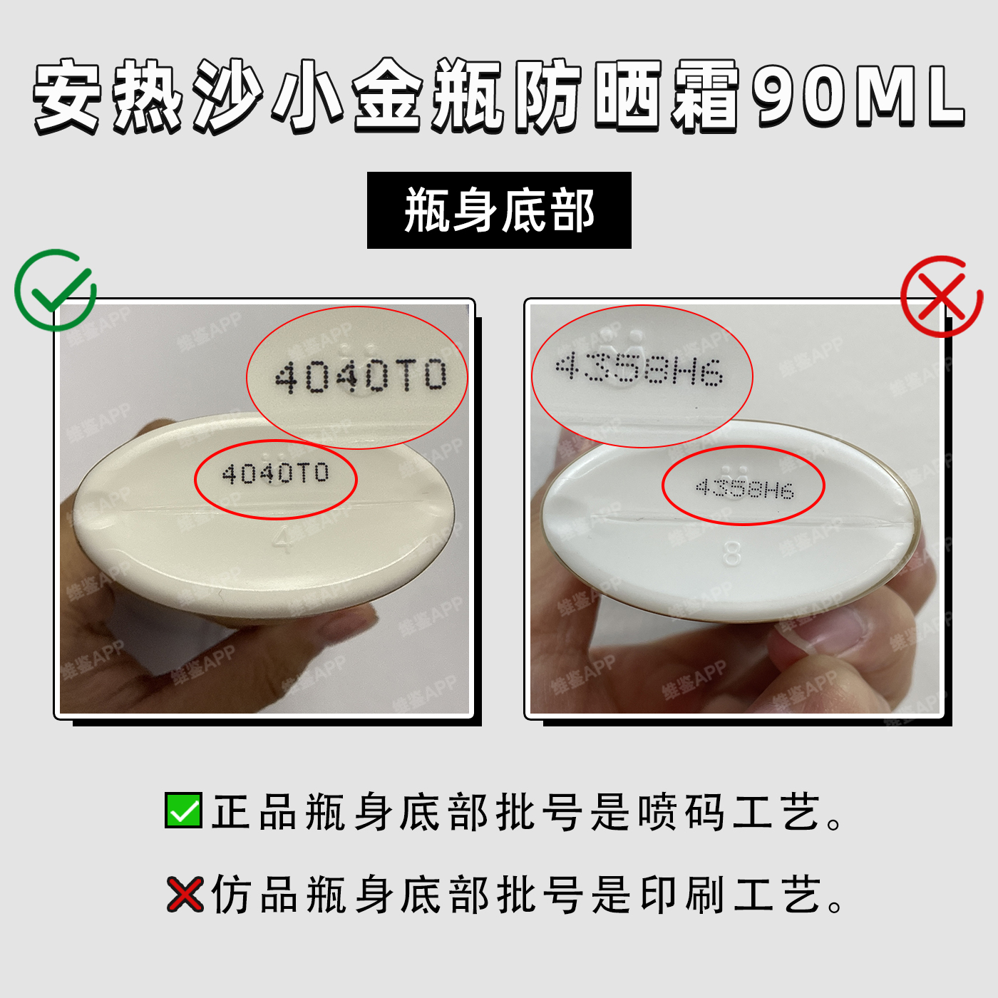 正品瓶身底部批号是喷码工艺