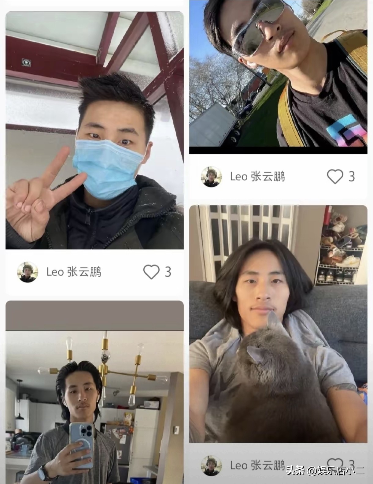 从张云鹏以前发布的个人账号中可能看出来他没有什么朋友的,每次发布动态都是他孤身一人,而他更喜欢小动物。