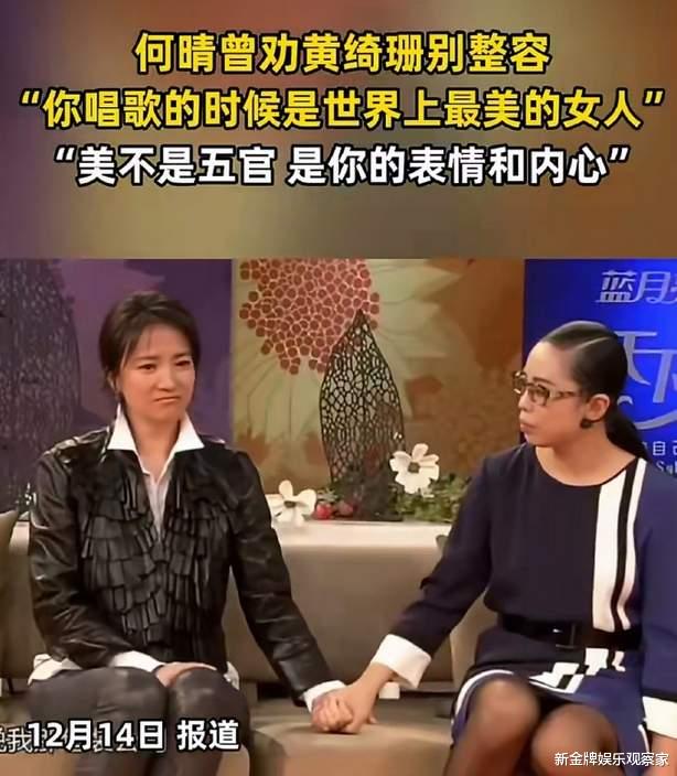 她唱歌的时候是独一无二、最美的。”何晴的这番话,如同一缕温暖的阳光,驱散了黄绮珊心中的阴霾。黄绮珊也听从了何晴的劝告,没有去整容。在她们眼中,一个人的内在和自身实力才是最重要的。好看的皮囊千篇一律,而实力与内在却是独一无二的。这份真诚的友情,让她们在彼此的生命中留下了浓墨重彩的一笔。