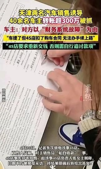事情的经过令人震惊。一名车主雷先生在天津某4S店购车时,被一名销售员以“财务系统故障”为由,要求将76195元的定金转入其个人账户。雷先生成为了在4S店购物时受骗的40余名车主之一,合计损失金额超300万元。这不仅是个体的悲剧,更是集体信任的崩塌。在网络上,事件引发了热议,许多消费者纷纷发声,表达了对行业信任缺失的担忧与不满。
