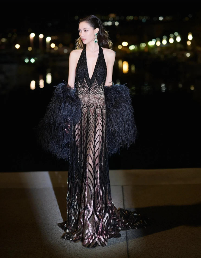 在2025年戛纳电影节的红毯上,钟楚曦的造型无疑成为了全场的焦点。她身着Elie Saab 2024秋冬高级定制系列黑色
