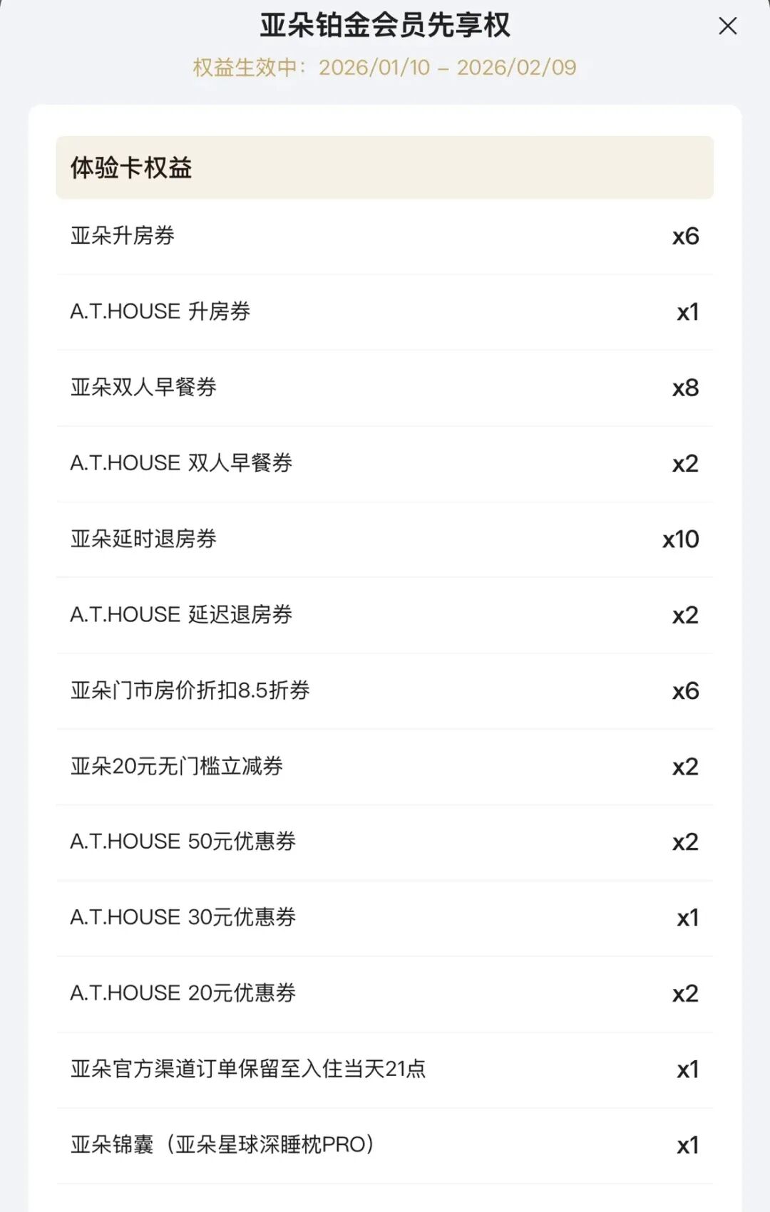 绑定成功的那一刻,全年至多12次的亚朵高等级会员体验权便已到账。其中最实在的,莫过于免费房型升级与延迟退房这两项核心权益。