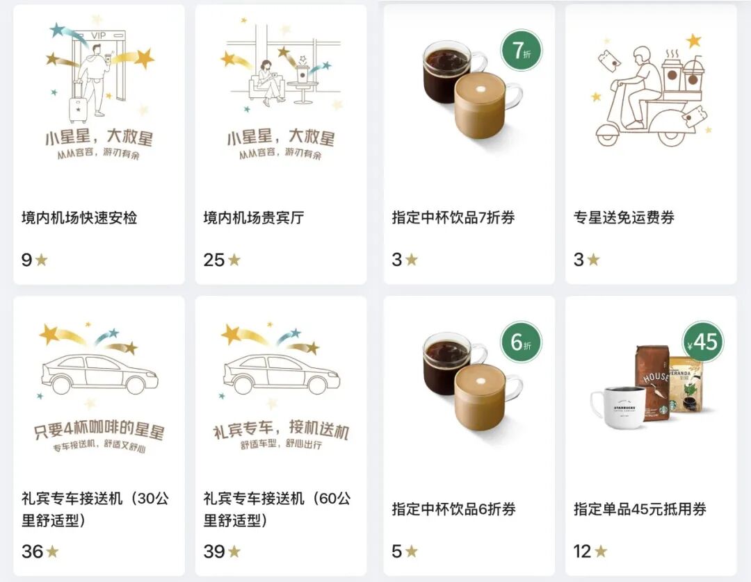而亚朵的会员同样收获了“反向惊喜”。住酒店期间的星巴克消费能享受双倍积星,那些积攒的星星,未来又可以兑换成机场贵宾厅、礼宾专车等服务。