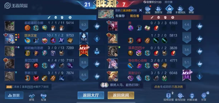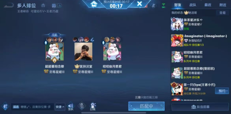 没错,自从王者荣耀开放了组排之后,想要上分的话,还是以双排,三排甚至是五排比较好。毕竟,这样我们能够确定队友都是真人啊。尤其是在新赛季的前半段,普通玩家想要上分,还是有点难的,除了要选择版本强势英雄之外,拥有一个强劲的队友,是事半功倍的。这不,有玩家在新赛季的时候,通过双排或者是三排,直接是一夜上最强王者段位。尤其是情侣玩家,搭配一个高手的话,上分简直跟喝水一样简单哈。比如说我们今天要说这几个玩家,国服玩家带情侣三排,结果连胜到手软,哈哈。