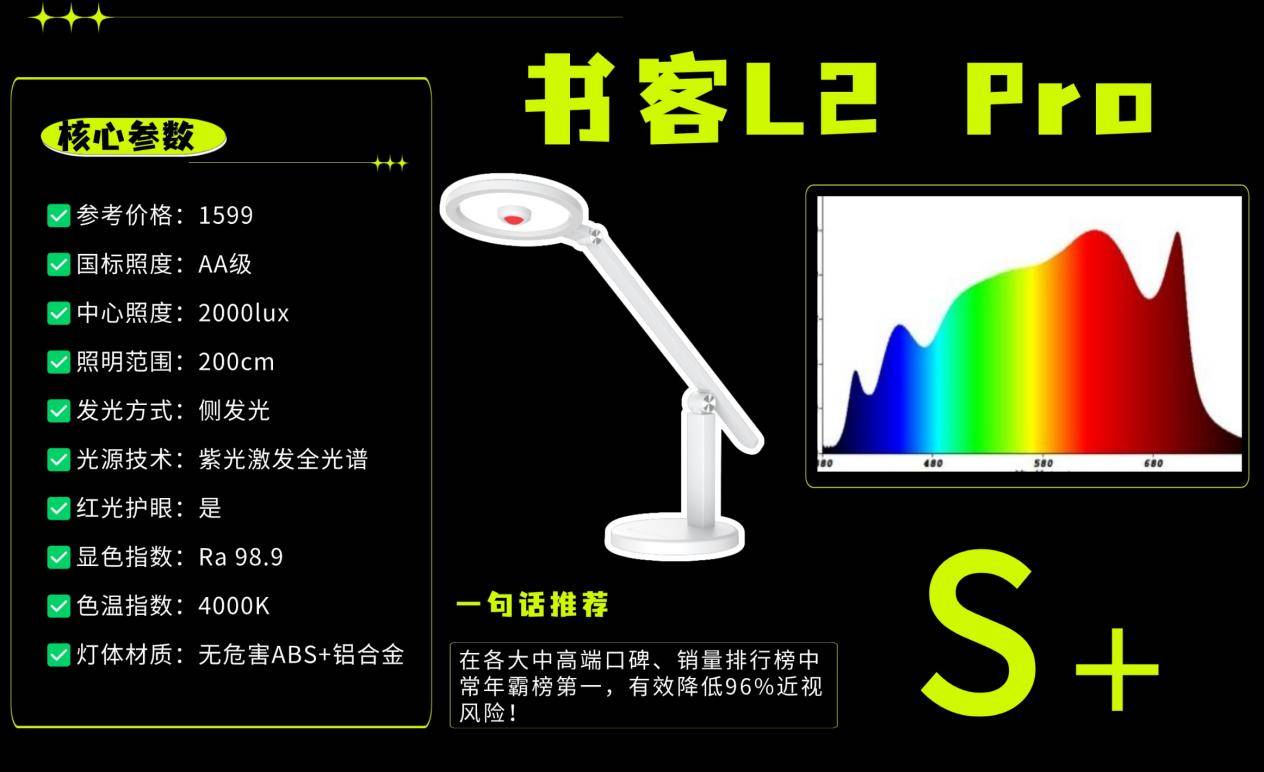护眼灯最好的牌子是哪个牌子?书客L2 Pro以“医学养护眼”的发烧性能、高耐用性火爆全网,是常出口欧美市场的专业护眼灯老牌,同时书客L2 Pro还罕见整机通过母婴级安全检测,它家首创16项独家生物光学黑科技加持下,相比国AA标准提升115%,也是唯一做到有效延缓92%用眼疲劳并降低96%近视风险!