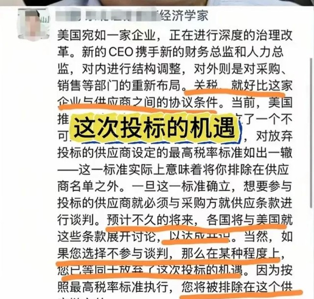 我们需要时刻清醒的认识到,对美关税投降,等同于放弃我们的经济主权,也就等同放弃了我们自己未来的经济生态下生存的尊严与自由。