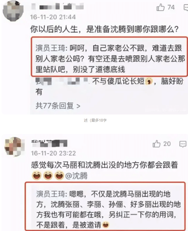 节目播出后,“王琦情商低,希望沈腾与马丽在一起”的言论也都接踵而至。对于这些辣评,王琦也是毫不客气的一一进行回怼。