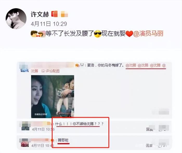 2017年1月11日,马丽公开了与90后小男友许文赫的恋情,要命的是第二天就是与沈腾的合体直播。在长达一个多小时的直播中,沈腾发反复复提及马丽有男朋友这件事。甚至连切菜的时候也不忘调侃“自从马丽那什么之后,连刀都钝了。”
