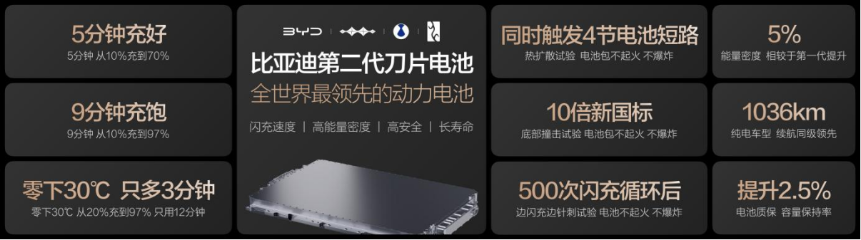 这款电池还解决了行业里“闪充”与“高能量密度”的矛盾,能量密度相比第一代提升5%以上,像腾势Z9GT搭载该电池后续航达到1036公里。同时,它打造了“锂离子高速通道”和“全温域智能热管理系统”,让闪充对电池寿命几乎没有影响,比亚迪还加码了电池质保政策,电池质保的“容量保持率”整体提升2.5%,电芯依旧提供“终身保修”,并且延续了针刺不起火、强抗撞击的安全优势,做到续航与安全双封顶。
