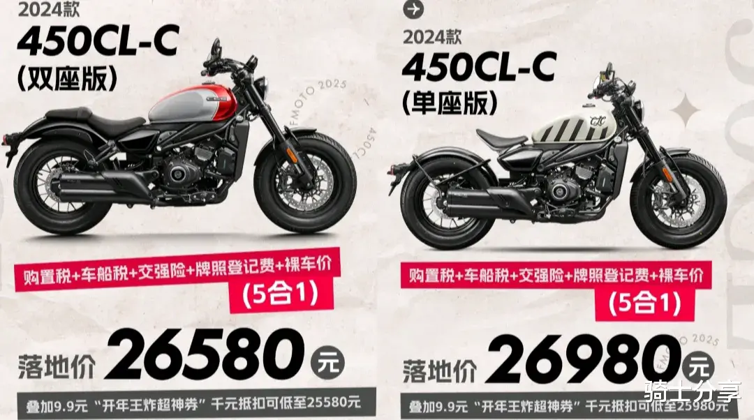 这笔账我们应该如何算呢?其实并不难搞清楚,450CL-C双座版的落地价最终变成了25580元,单座版则为25980元,请注意是落地价,而不是到手价。