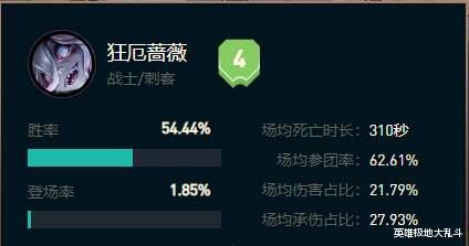 剑魔场均伤害占比也就21.38%,场均承伤占比27.32%。
