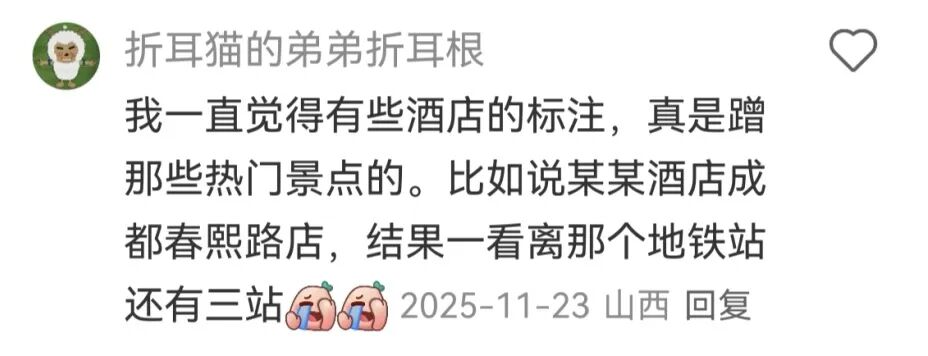 另一个巨坑就是位置。页面上大大写着“距XX景区步行5分钟”、“地铁口零距离”,听着是不是特别诱人?
