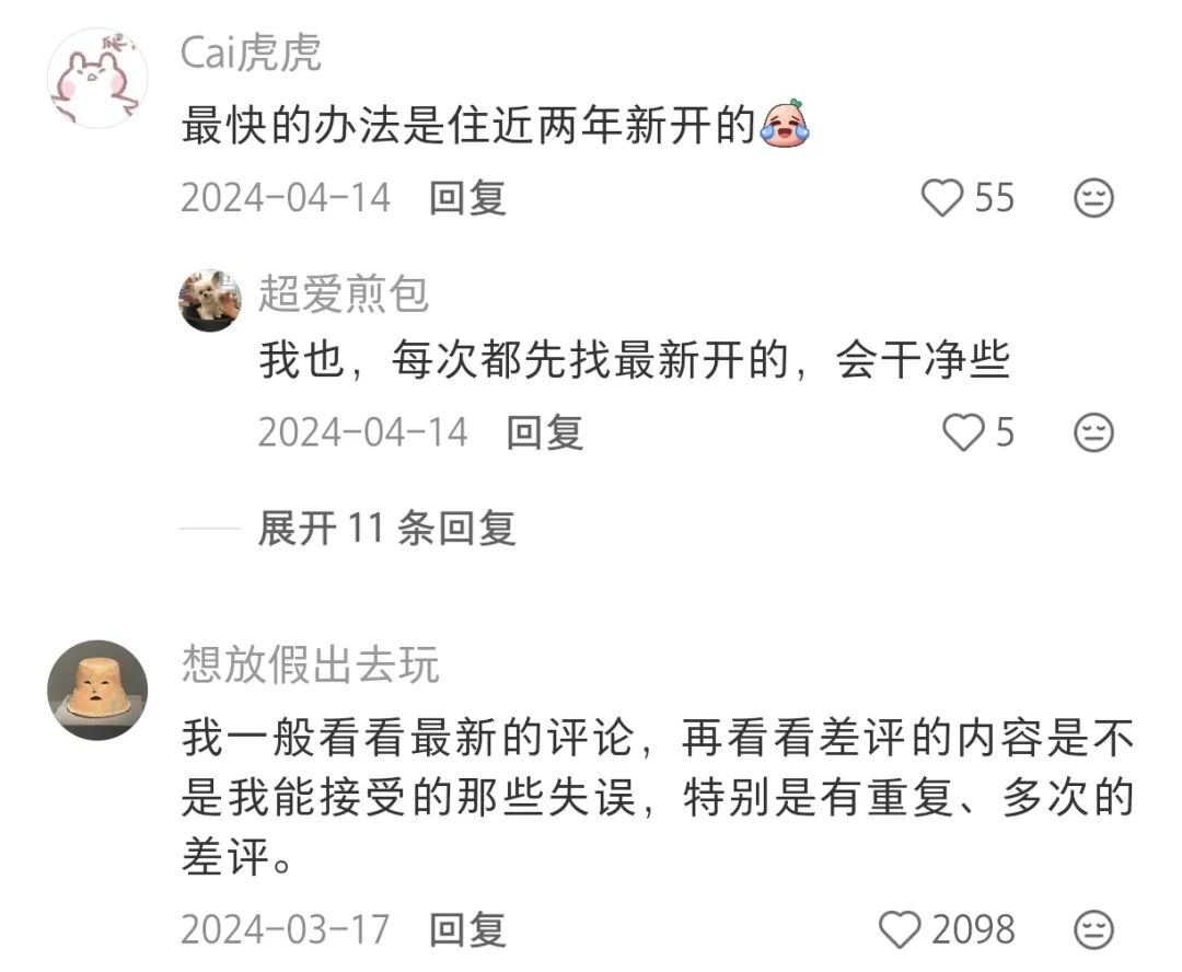 2. 关注“差评”在吐槽什么:如果差评集中抱怨隔音差、卫生死角、热水不稳定、服务响应慢等硬件或核心服务问题,那你就要慎重考虑了。如果差评只是抱怨天气不好、外卖送不上楼等非酒店可控因素,则可以酌情忽略。
