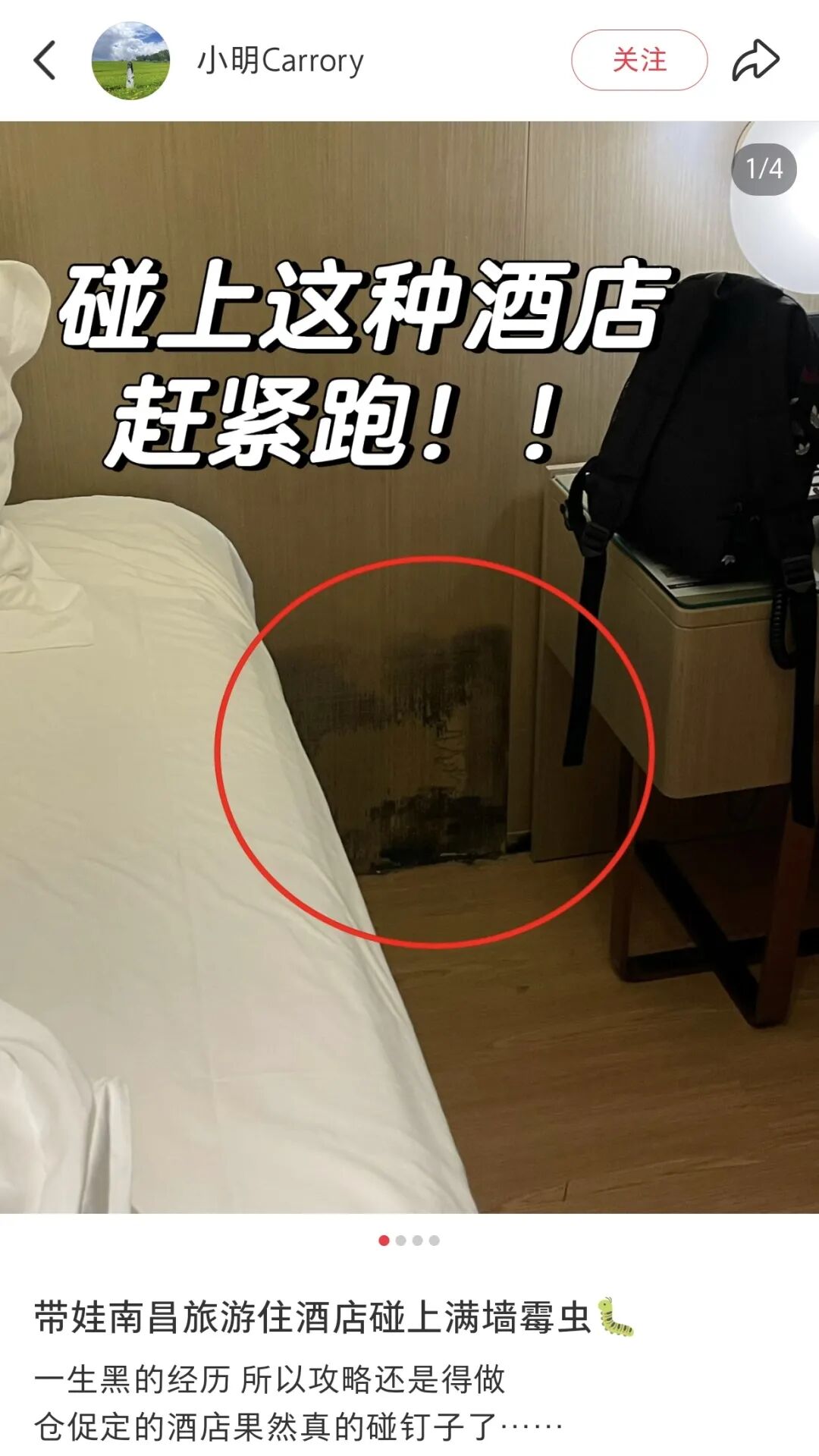 结果呢?一打开房门,心凉了半截:房间可能比图片里看起来小了一半,所谓“城景房”窗外是对面楼体的墙壁,而期待中“温馨整洁”的房间,墙角却能看到发霉的痕迹、浴室边缘藏着洗不掉的霉点……
