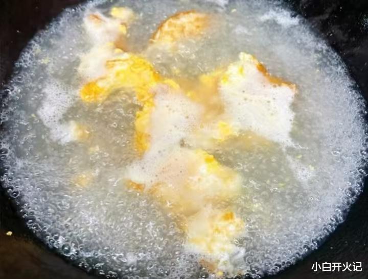 最激动的时刻来了:提壶滚烫开水,沿锅边“冲魂”。图片里那道“白龙入水”太治愈,蛋液被热浪撕成丝丝缕缕,油水乳化,“白雾”腾起,汤色秒变牛奶。记得水量没过鸡蛋一个指节,后续加料还会涨,别一次倒太满。