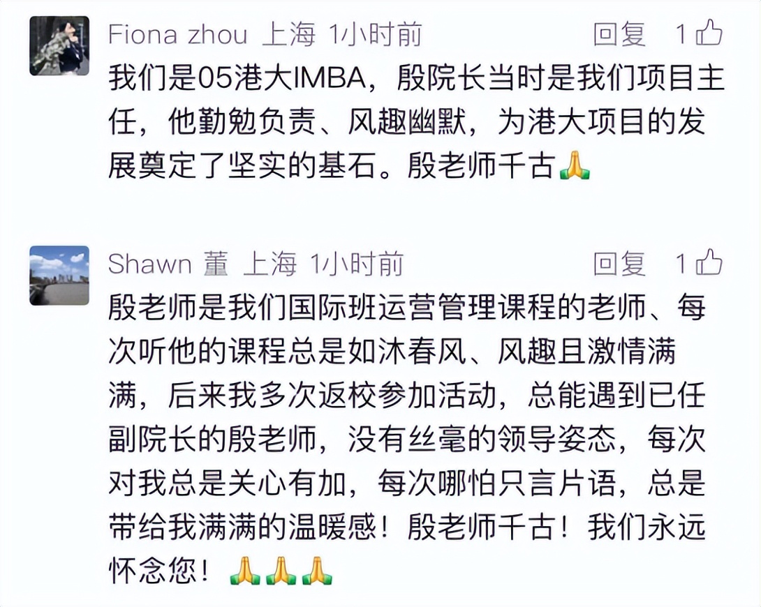 翻看这三百余位学生的留言,仿佛打开了一本“桃李满天下”的书,切身感受到同学们的悲痛与不舍,在此也希望敬爱的殷志文教授一路走好,在另个没有病痛的世界实现自己未尽的心愿。