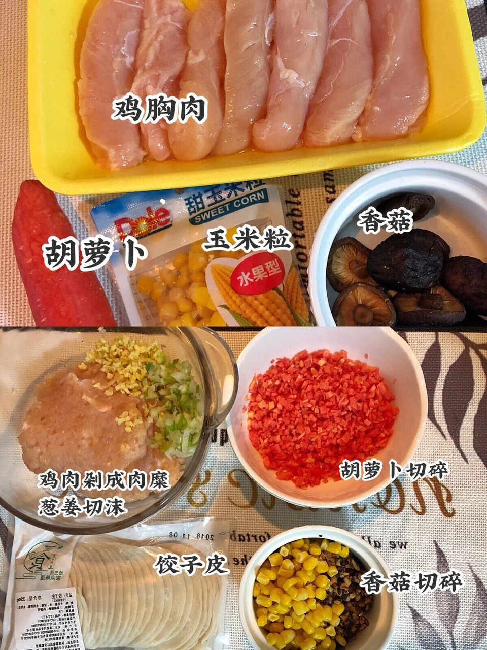 我不是那种吃不胖的所以不定期会控制下自己的体重,但是有没办法控制嘴馋,所以想吃饺子的时候就会用鸡胸肉来包,这样热量会比猪肉低很多,这个饺子也可以给宝宝吃哦