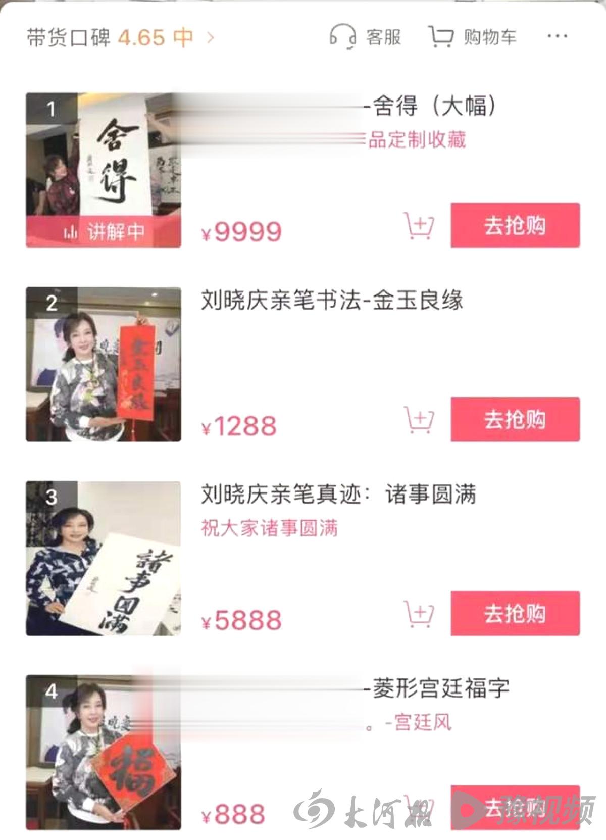 2月1日晚,大河报·豫视频记者注意到,75岁的著名演员刘晓庆现身直播间,镜头前她展纸挥毫,现场创作并售卖个人书法作品,因“亲笔字画”的定价再度引发网络热议:单“福”字售价1088元,四字作品如“平安喜乐”“紫气东来”标价高达3999元。