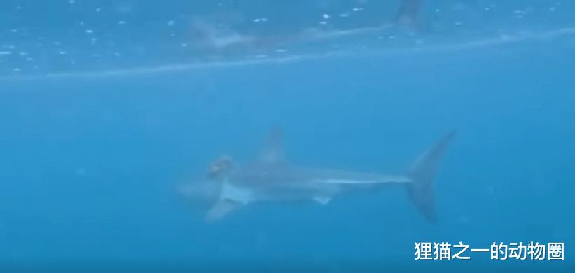 她表示他们观察了这对奇怪的组合10分钟。鲨鱼的反应非常正常,似乎完全没有被章鱼所打扰,这章鱼也是完全不敢乱动,它的触手全部都放在鲨鱼的头上,也许是为了避免被鲨鱼发现。大家都认为如果这条鲨鱼游得快一些,这条章鱼就会被甩掉,但鲨鱼就是不紧不慢,这让人怀疑:这只鲨鱼压根不知道自己头顶有只章鱼。