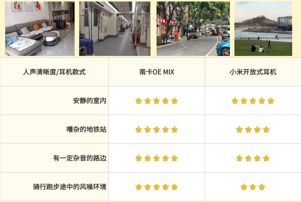 如今,许多开放式耳机都搭载了通话降噪技术,目的是在通话时减少环境噪音干扰,提升语音传输的清晰度。为了全面了解各款耳机的通话表现,我们特意在多种场景下进行了实测,包括安静的室内环境、带有背景噪音的街道、人流密集的地铁站,以及骑行或跑步时常遇到的风噪环境。测试过程中,我们重点记录了在不同噪音场景下通话语音的还原度与清晰性表现。