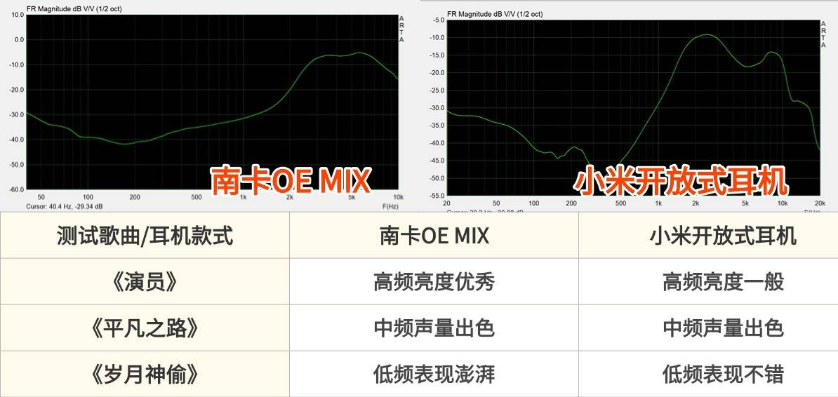 南卡 OE MIX 的音质表现非常亮眼,尤其在低频段尤为出色,鼓点厚实有力,节奏感强烈,听感上更具沉浸感和冲击力。中频部分以人声为主,声像位置贴耳且细节丰富,略带颗粒感,适合流行风格的表达;男女声都能展现良好的清晰度和质感。高频区域亮度适中,略带修饰但不刺耳,乐器的细节展现力不错,延展性也较强。整体听感均衡且偏细腻,适合喜欢情绪细节和多音乐风格的用户。