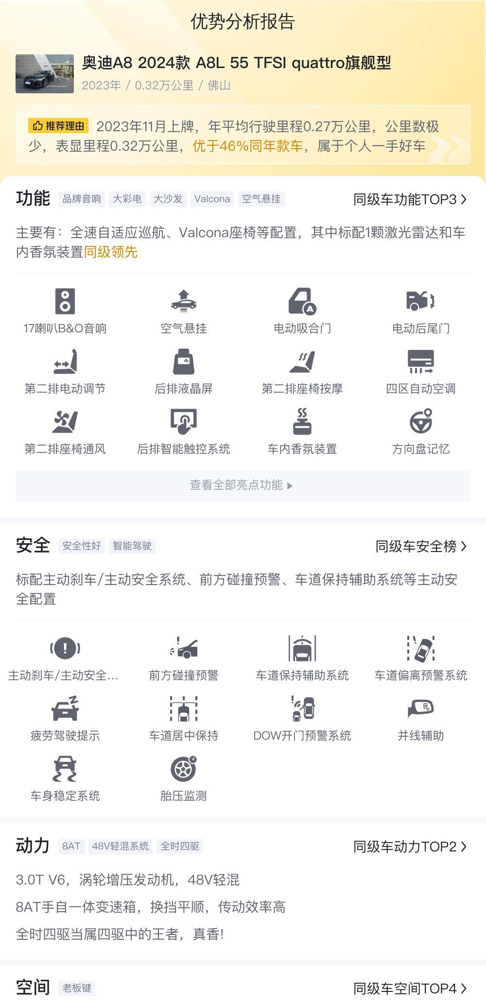 七折的奥迪A8L,香吗?这个问题最近一直萦绕在我脑海里。一辆2024款的A8L 55 TFSI quattro旗舰型,开了不到一年,里程才3200公里,新车落地价一百多万,现在二手市场报价70多万,相当于打了七折。这价格,确实诱人,但“真香”背后,会不会隐藏着什么“猫腻”?
