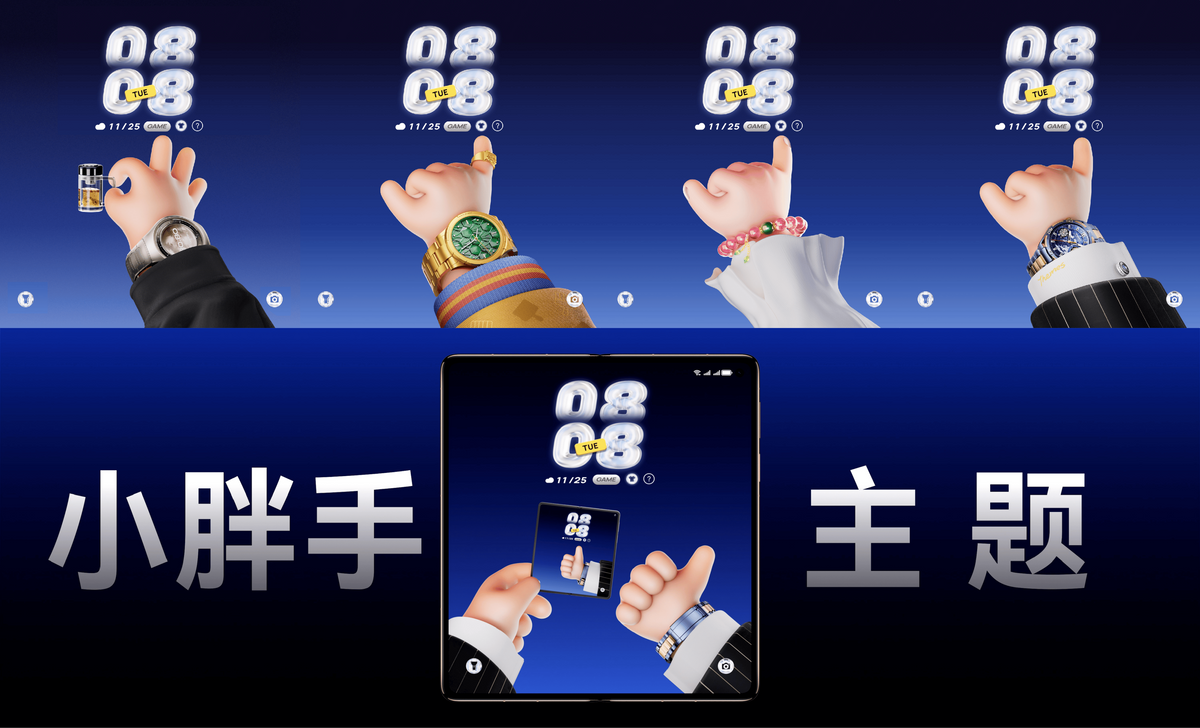 在这份权益中,最让我期待的是包含在Petal One悦享套餐中的华为主题权益。我想给我即将到来的华为Mate X7配上新推出的《小胖手典藏版》主题。看了发布会的介绍,这款主题在锁屏界面就能和屏幕里的小胖手玩“猜拳”游戏,赢了还能解锁“领导版”、“土豪版”等小胖手新装扮。跟朋友聚会时拿出手机“碰一碰”,触发锁屏互动彩蛋,这社交属性绝对拉满,既显科技感又有趣味性。