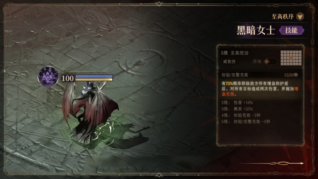 这位暗黑女王的强度对得起百日的等待,她的"万物为子"被动让每场战斗都像滚雪球,场上阵亡越多我方越强;"至高统治"大招75%概率清空敌方所有buff,直接把依赖增益的阵容打成白板。这些技能设定也完美呼应背景故事——"吞噬敌人强化自身"正是她对混沌之子的复仇执念的体现。