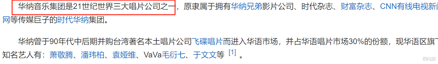 华纳音乐的背后就是著名的华纳影业,作为全球影视,电影行业最有影响力的巨头公司之一,旗下的唱片公司华纳音乐也签约了众多实力歌手,其中大众所熟知的中国歌手就有萧敬腾、潘玮柏、袁娅维、于文文、邓紫棋等等。