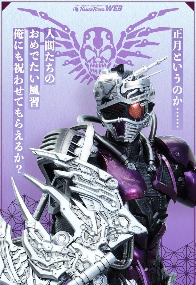 有趣的是,这次还加入了《假面骑士555》中的蛇奥菲以诺,变身者是海棠。贺图中并没有展示完整的蛇奥菲以诺皮套,而是给出了一个虚影,可能是考虑到过年时展示这个形象不太合适。这一设计既保留了神秘感,又避免了不合适的视觉效果。