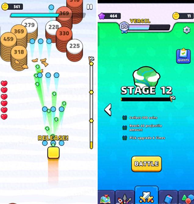 《Rapid Stack Blitz Game》的战斗为PVE竖版射击,融合了跑酷和轻肉鸽元素:
