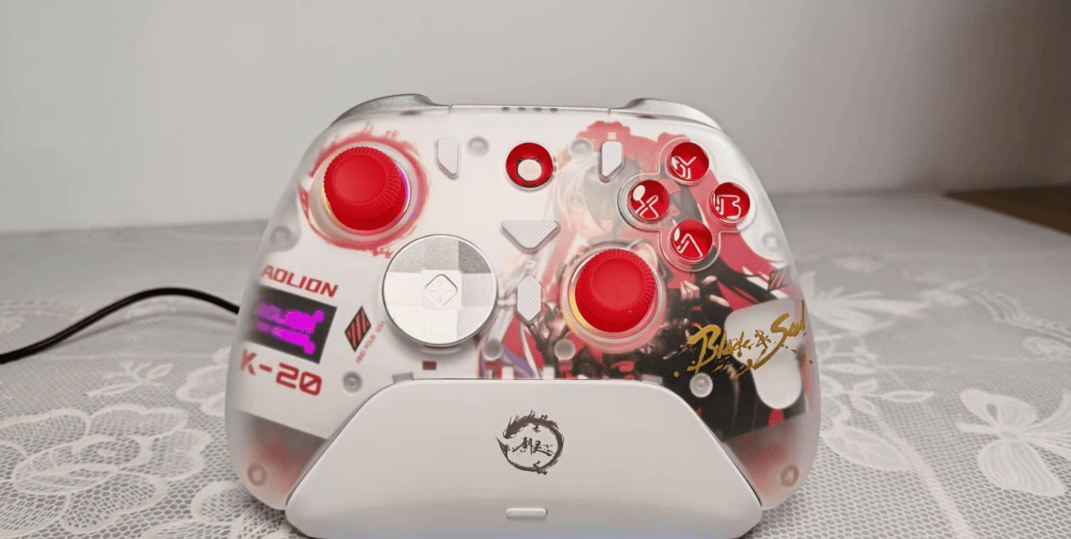 这款手柄一眼就能看出是Xbox经典布局,握在手里重量刚好不压手,搭配的RGB充电底座一放上去,电竞氛围瞬间拉满。顶部延续传统肩键+扳机键设计,底座底部还藏了个收纳仓,2.4G连接适配器和备用十字键帽能一起放进去,细节考虑得很周到。整体手感圆润贴手,长时间玩也不觉得累;连接方式特别全,PC、Switch2、蓝牙、2.4G都能适配,还能通过APP调节,拿到手不用额外设置,就能无缝适配各种设备。