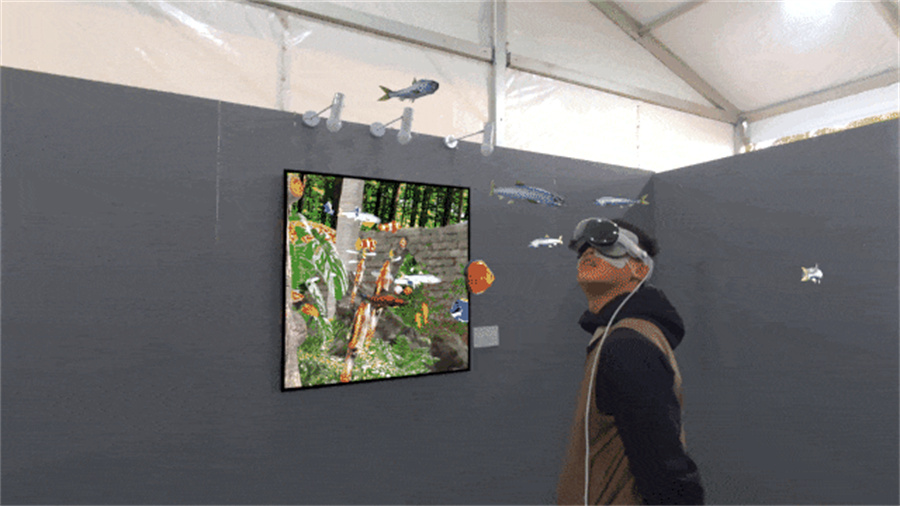 例如,在数字策展与 MR 创作工具领域,Story XR内容创作引擎实现了0代码可视化创作,所见即所得,为创作者提供了时间轴、关键帧、空间追踪、物体锚点等强大功能。不入侵不改造就能在原展览结构上叠加更加有趣的混合现实体验,为数字文旅、创意展览、研学/教育空间注入了全新活力。在Let’s Vision 2025 展会上打造的混合现实(MR)艺术展,观众等候超过1个半小时才得以入场,充分验证了空间计算技术与设备在数字文旅与数字展览方面的商业价值与变革体验,成绩斐然。