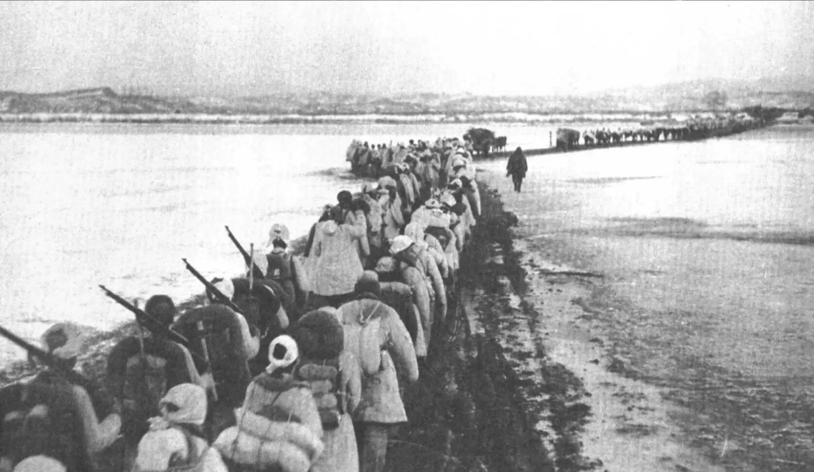 战士们要赶在美军前面到达目的地,他们肩扛着40公斤重的装备,在零下20度的雪夜里,连续走了14个小时,急行军72.5公里,平均每小时走5.1公里,这一速度竟比四十年后海湾战争中的美军机械化部队还快1公里!